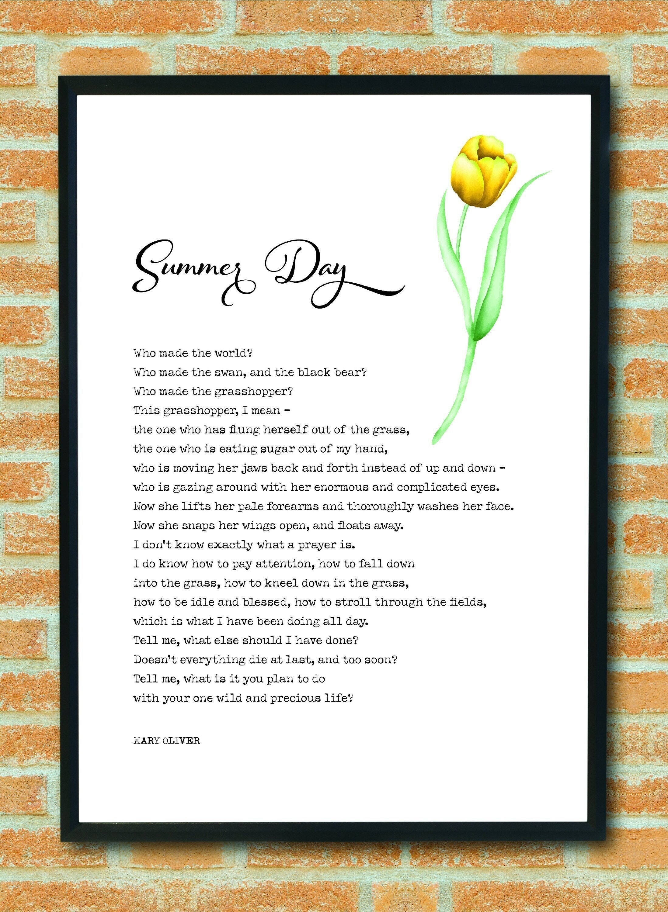 Summer Day Mary Oliver Poem Strength Motivation Etsy Ireland